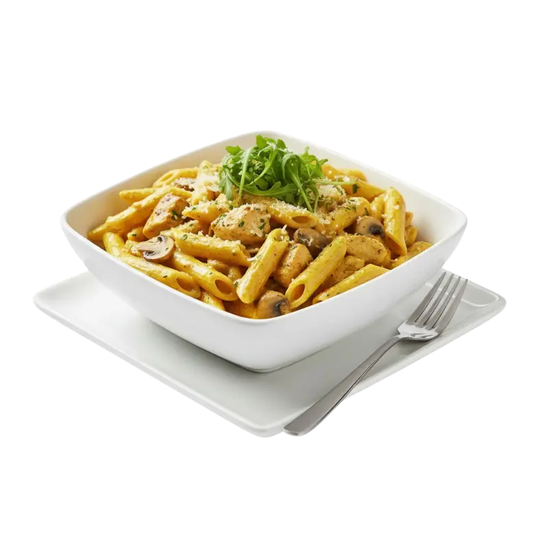 Chicken, mushrooms, creamy sauce, parmesan cheese, rocket...